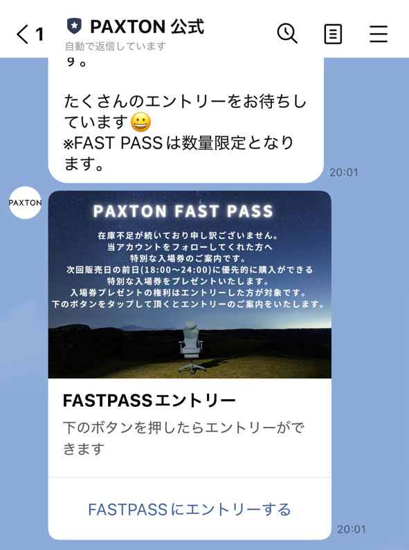 Paxton公式LINEと友達になると、FAST PASSをゲットできちゃうんです。